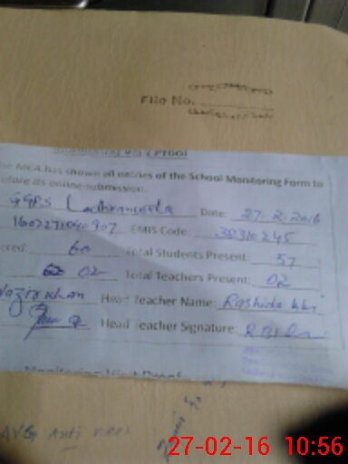 | EMIS Code: 38310245 | Name of School: GGPS LODHRAN WALA | |||