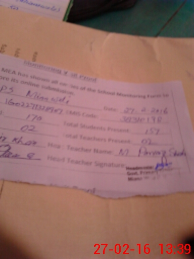 | Attendance Register | Head Teacher | MEA with School | Visit Proof |