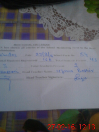 | Attendance Register | Head Teacher | MEA with School | Visit Proof |