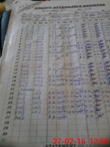| CNIC | Full Name | Designation | R/C | Absence During Last Calender Month |