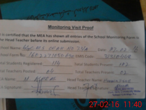 | EMIS Code: 31310448 | Name of School: GGCMS CHAK NO. 73/A | |||