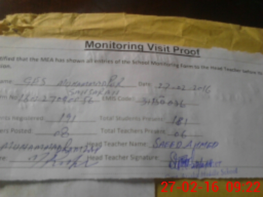 | Certified that this School was Inspected by the Undersigned MEA/DMO Today and the Information Stated Above is as Per Record. | |||||