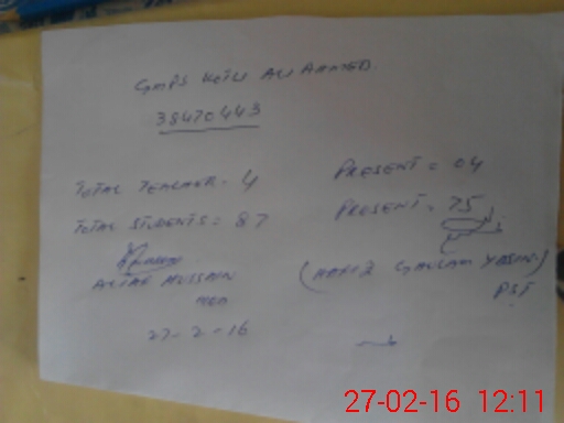 | Name: MU**** MU**** Designation: (School Headmaster's/Headmistress's) PST Phone/Cell Number: 03**** |