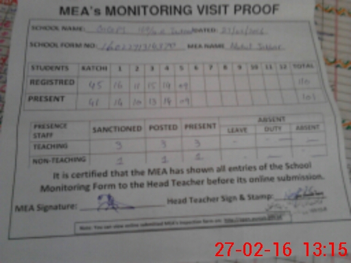 | Certified that this School was Inspected by the Undersigned MEA/DMO Today and the Information Stated Above is as Per Record. | |||||