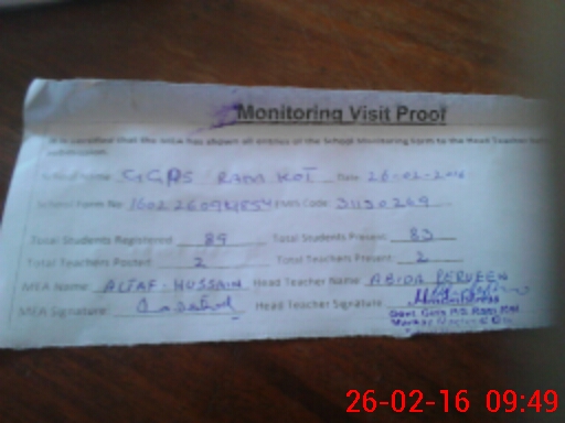 | Attendance Register | Head Teacher | MEA with School | Visit Proof |