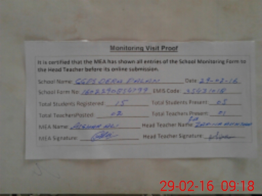 | Attendance Register | Head Teacher | MEA with School | Visit Proof |