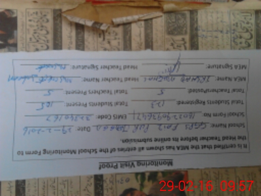 | Name: Mu**** Ja**** Designation: (School Headmaster's/Headmistress's) PST Phone/Cell Number: 03**** |