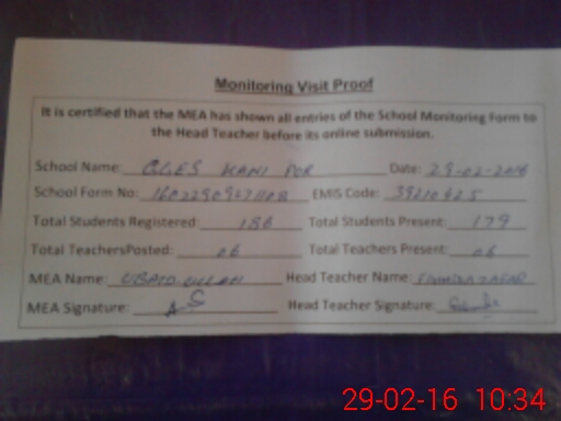 | Certified that this School was Inspected by the Undersigned MEA/DMO Today and the Information Stated Above is as Per Record. | |||||
