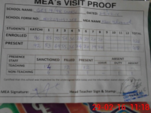 | Certified that this School was Inspected by the Undersigned MEA/DMO Today and the Information Stated Above is as Per Record. | |||||