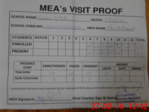 | Certified that this School was Inspected by the Undersigned MEA/DMO Today and the Information Stated Above is as Per Record. | |||||
