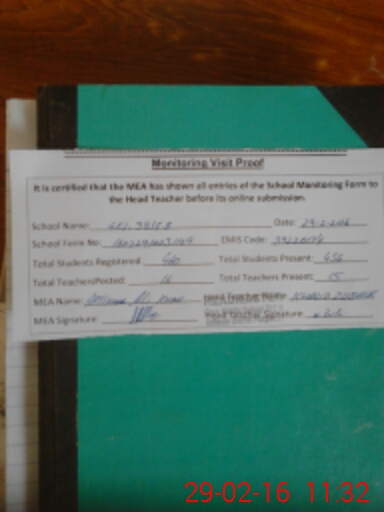 | Attendance Register | Head Teacher | MEA with School | Visit Proof |