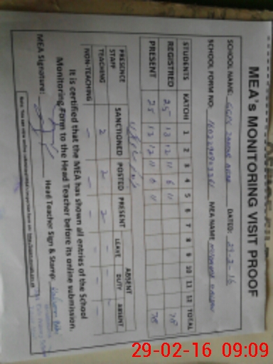 | Attendance Register | Head Teacher | MEA with School | Visit Proof |