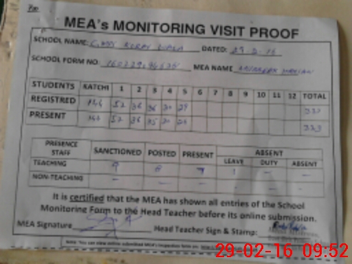 | Certified that this School was Inspected by the Undersigned MEA/DMO Today and the Information Stated Above is as Per Record. | |||||