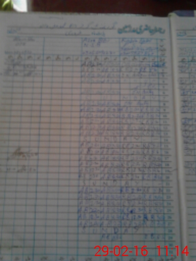 | CNIC | Full Name | Designation | R/C | Absence During Last Calender Month |