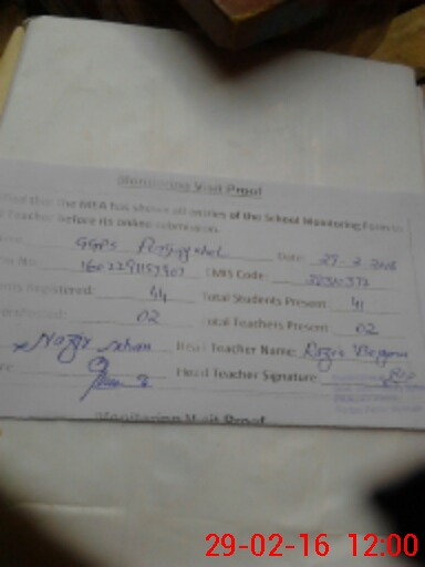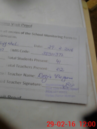 | Attendance Register | Head Teacher | MEA with School | Visit Proof |
