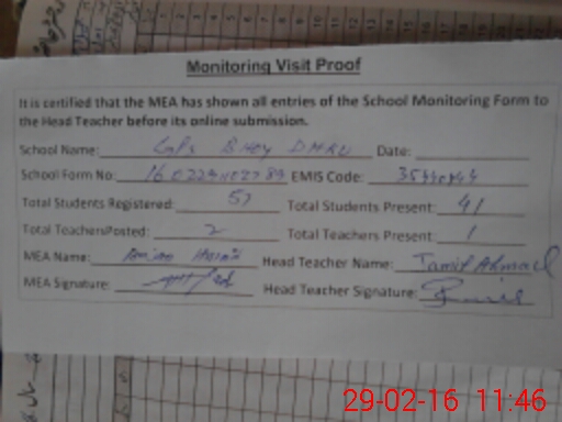 | Certified that this School was Inspected by the Undersigned MEA/DMO Today and the Information Stated Above is as Per Record. | |||||