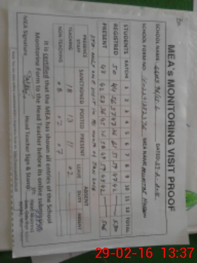 | Attendance Register | Head Teacher | MEA with School | Visit Proof |