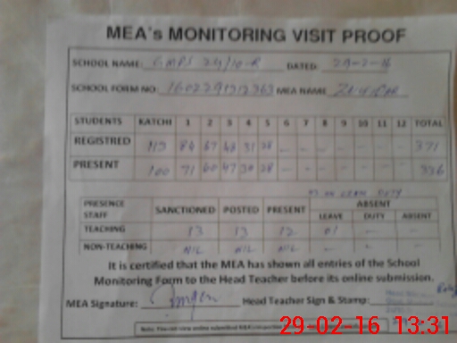 | Certified that this School was Inspected by the Undersigned MEA/DMO Today and the Information Stated Above is as Per Record. | |||||