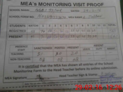 | Certified that this School was Inspected by the Undersigned MEA/DMO Today and the Information Stated Above is as Per Record. | |||||