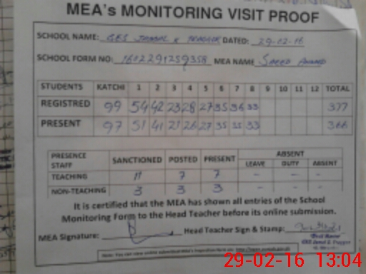 | Attendance Register | Head Teacher | MEA with School | Visit Proof |