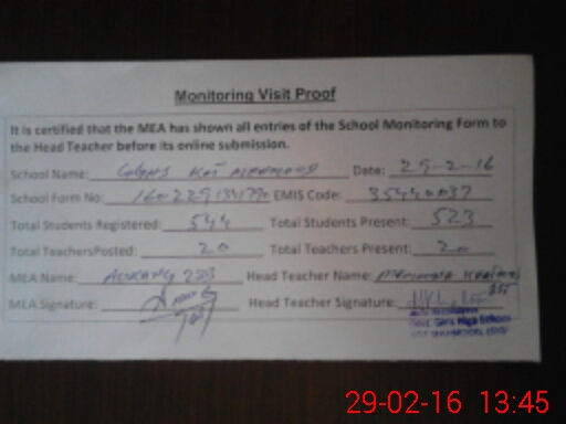 | EMIS Code: 35440037 | Name of School: GGHS KOT MAHMOOD | |||