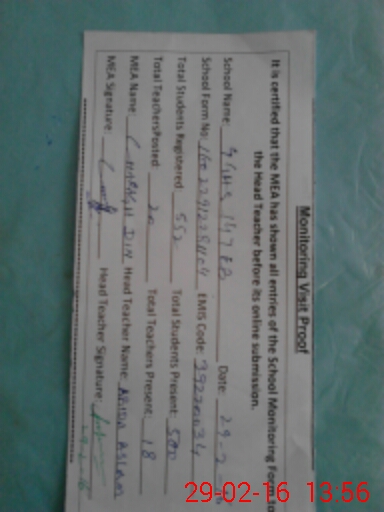 | Certified that this School was Inspected by the Undersigned MEA/DMO Today and the Information Stated Above is as Per Record. | |||||