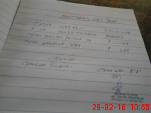 | Attendance Register | Head Teacher | MEA with School | Visit Proof |