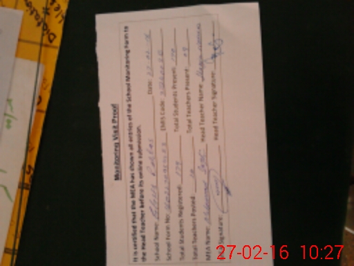 | Monitoring Date: 27-02-2016 | Start Time: 27-02-2016 09:54 AM | End Time: 27-02-2016 10:30 AM | Name of MEA: Za**** Ab**** | |