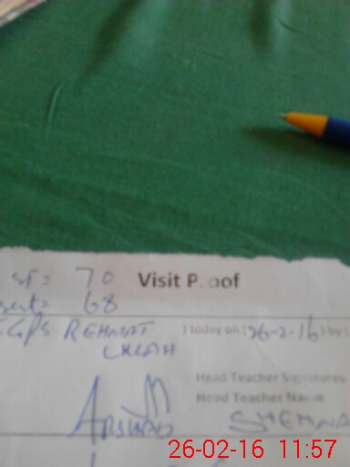 | Attendance Register | Head Teacher | MEA with School | Visit Proof |