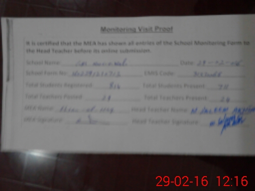 | Certified that this School was Inspected by the Undersigned MEA/DMO Today and the Information Stated Above is as Per Record. | |||||