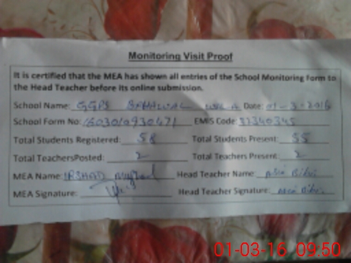 | EMIS Code: 32340345 | Name of School: GGPS BAHAWAL WALA | |||