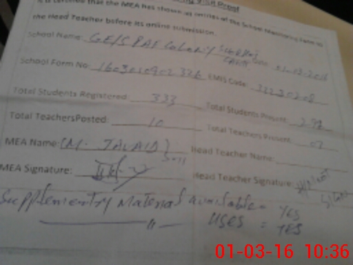 | Attendance Register | Head Teacher | MEA with School | Visit Proof |