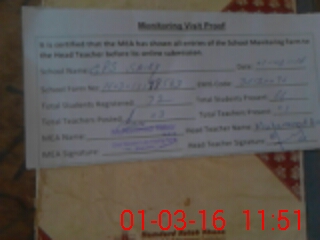 | Attendance Register | Head Teacher | MEA with School | Visit Proof |
