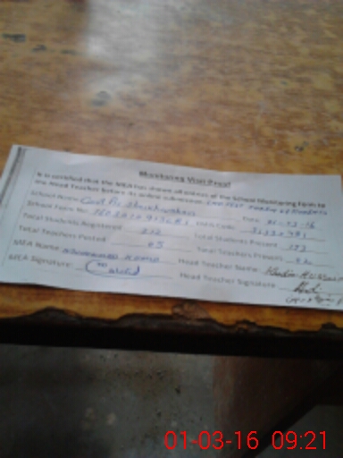 | Attendance Register | Head Teacher | MEA with School | Visit Proof |