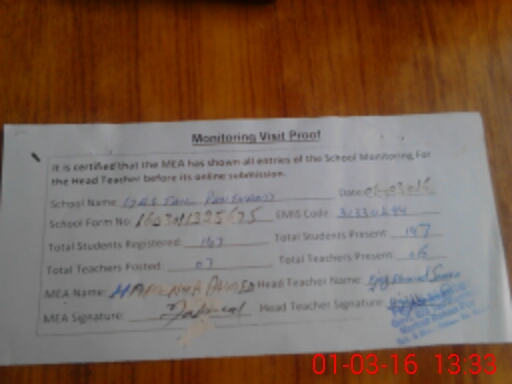 | Attendance Register | Head Teacher | MEA with School | Visit Proof |