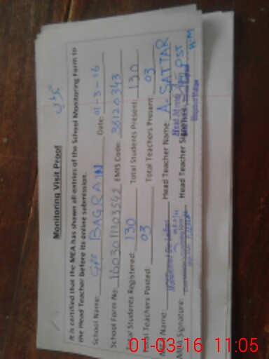 | Attendance Register | Head Teacher | MEA with School | Visit Proof |