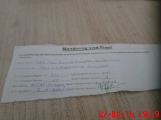 | Monitoring Date: 27-02-2016 | Start Time: 27-02-2016 08:58 AM | End Time: 27-02-2016 09:41 AM | Name of MEA: Al**** Hu**** BN**** | |