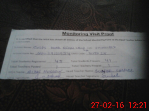| Attendance Register | Head Teacher | MEA with School | Visit Proof |
