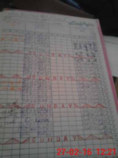 | CNIC | Full Name | Designation | R/C | Absence During Last Calender Month |