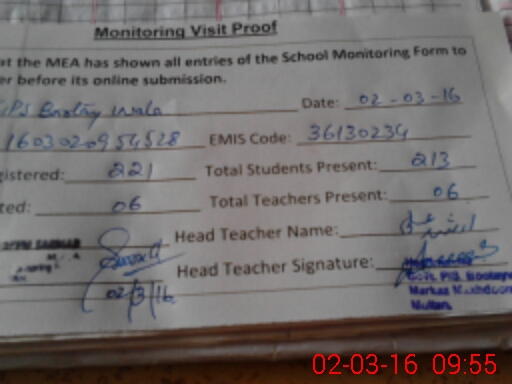 | Certified that this School was Inspected by the Undersigned MEA/DMO Today and the Information Stated Above is as Per Record. | |||||
