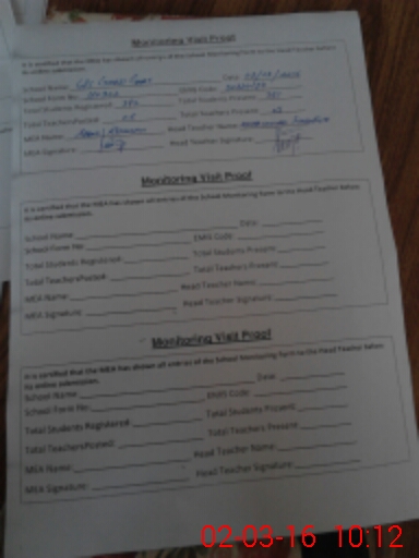 | Attendance Register | Head Teacher | MEA with School | Visit Proof |