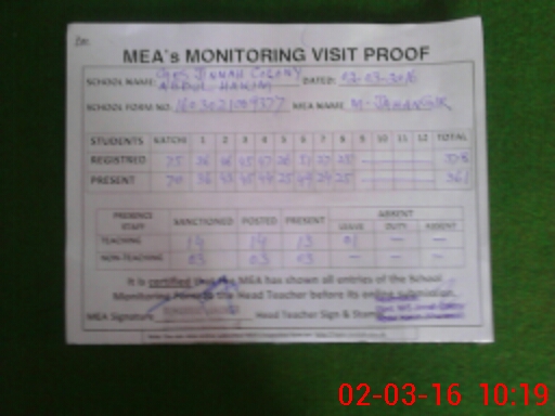 | Certified that this School was Inspected by the Undersigned MEA/DMO Today and the Information Stated Above is as Per Record. | |||||
