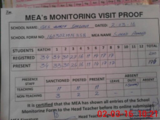 | Certified that this School was Inspected by the Undersigned MEA/DMO Today and the Information Stated Above is as Per Record. | |||||