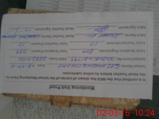 | Certified that this School was Inspected by the Undersigned MEA/DMO Today and the Information Stated Above is as Per Record. | |||||
