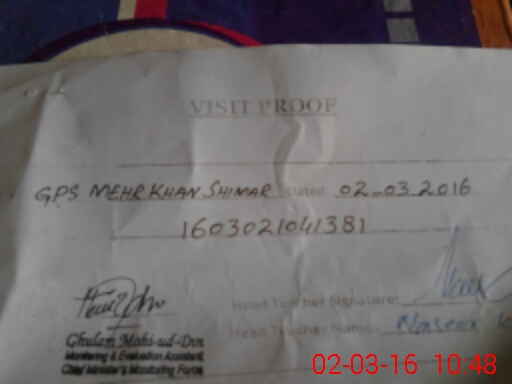 | EMIS Code: 38230240 | Name of School: GPS MEHR KHAN SHIMAR | |||