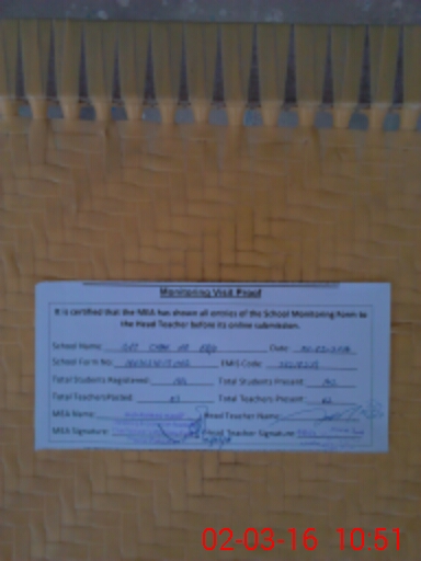 | Certified that this School was Inspected by the Undersigned MEA/DMO Today and the Information Stated Above is as Per Record. | |||||