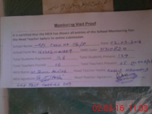 | Certified that this School was Inspected by the Undersigned MEA/DMO Today and the Information Stated Above is as Per Record. | |||||