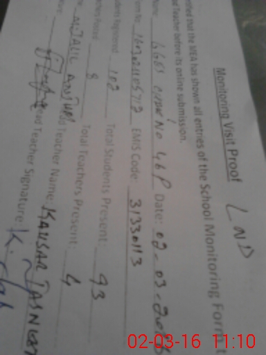 | Monitoring Date: 02-03-2016 | Start Time: 02-03-2016 10:45 AM | End Time: 02-03-2016 11:24 AM | Name of MEA: Mu**** Ja**** An**** | |