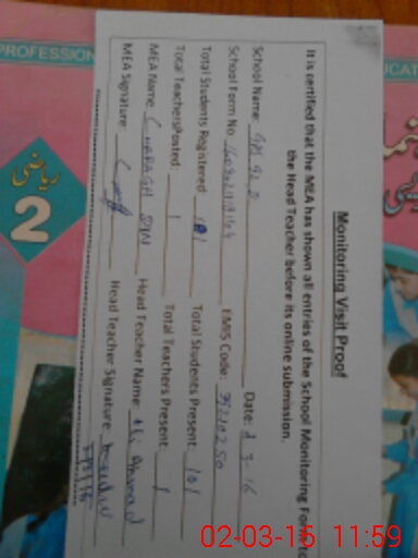 | Certified that this School was Inspected by the Undersigned MEA/DMO Today and the Information Stated Above is as Per Record. | |||||