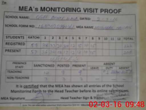 | Certified that this School was Inspected by the Undersigned MEA/DMO Today and the Information Stated Above is as Per Record. | |||||